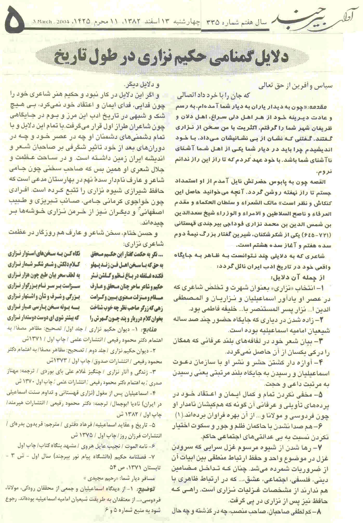 دلایل گمنامی حکیم نزاری در طول تاریخ